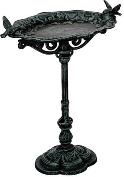 A dekoratív madárfürdő öntöttvasból készült, ellenáll az enyhe fagynak és a könnyű időjárási hatásoknak. Az egyes elemek össze vannak csavarozva, ami nagy stabilitást biztosít. Madarak, méhek, poszméhek, lepkék és mások itatójaként is alkalmas. Ősszel és télen madáretetőként is használható, hogy segítse a helyi madarak hibernálását. Termék részletek: méret