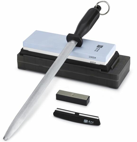 A TAIDEA XXL CHEF STEEL professzionális késélező készlet egy tökéletes, teljeskörű késélezési megoldás, hiszen a nagy méretű professzionális fenőkővel elvégezhetjük a késeink időszakos, alapos élezését, majd az ovális fenőacél rendszeres használatával, hosszú ideig élesen is tarthatjuk őket! A készlet tartalmaz egy prémium minőségű, nagyméretű kombinált fen
