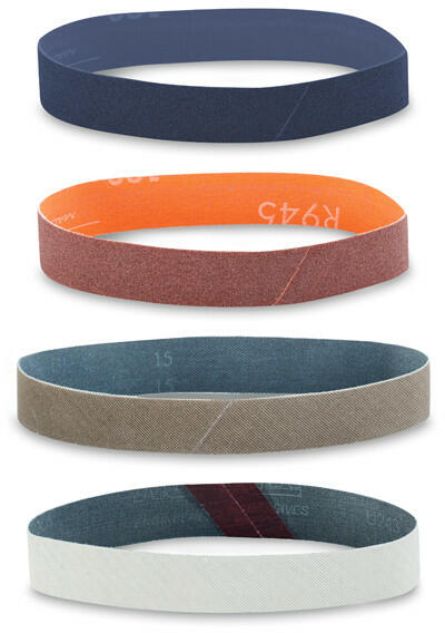 csiszolószalagok - 1x durva / 120ZA, 2x közepes / 120, 1x X30 AO / finom, 1x X4 AO / extra finom