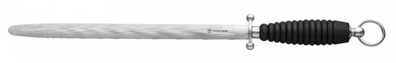 Wüsthof Standard Háztartási Fenőacél, ovális keresztmetszetű, 32 cm, akasztóval. Tulajdonságok: Anyaga: 65 Rockwell keménységű krómozott acél (2210 szerszámacél, 1,15% szén, 0,6% króm és 0,03% vanádium tartalommal) Acél hossza: 32 cm Teljes hossz: 47,6 cm Súly: 430 g