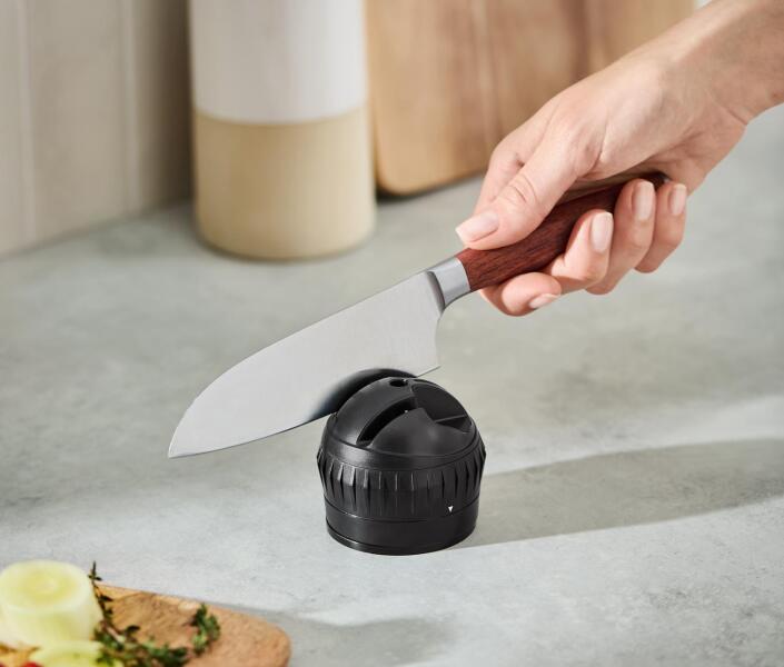Vannak tompa kései? Ez az élező minden bizonnyal jól jön majd otthonában. A háromfázisú élezőnek köszönhetően alaposan megélezheti és regenerálhatja késeit. Könnyen használható , hatékony és biztonságos a használata . Az alkalmazott mechanizmus és a kövek megfelelő elrendezése biztosítja a megfelelő élezési szöget. Olló élesítésének lehetősége is van. Az er