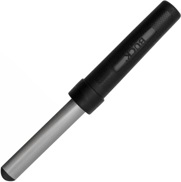 A praktikus, kör keresztmetszetű acél kiválóan alkalmas kések és szerszámok otthoni és útközbeni élezésére, köszönhetően a fogantyúnak, amely megvédi a botot a nem kívánt sérülésektől. A 10,5 cm hosszú bot gyémánt felületű, közepesen 750-es szemcséjű. BUCK logóval ellátott szintetikus anyagú nyélbe csúszik. Teljes hossza 23,2 cm.