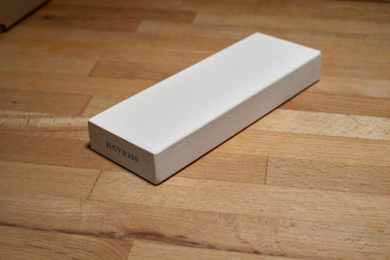 JIS#250 (FEPA F220) korundszemcsés fenőkő Méret: 175 x 60 x 20mm Súly: kb. 600g ?VTSZ 680430 0000 A HCR és a HCZ közötti méret, jó választás lehet ha nagyobb felület kell, mint a HCZ köveké, de árban olcsóbb mint a HCR széria. Ez a méret az átlagos japán kövek mérete, jól használható a nagyobb konyhakések élezéséhez is. Fontos információk A Haidu fenőkövek kézzel