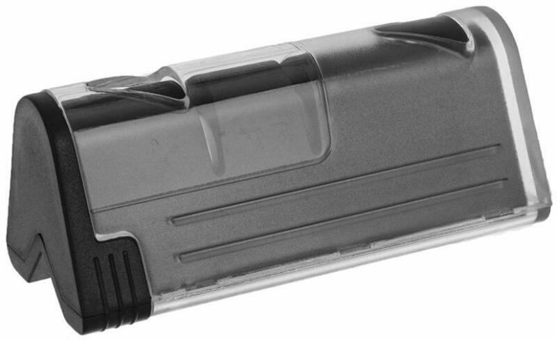 A késélező remek megoldás a fém kések egyszerű élezéséhez. Ellenálló műanyagból készült és kerámi csiszolótárcsákkal van ellátva. A kék tárcsa a durva élezéshez és a fehér tárcsa a lágy élezéshez használható. Az élezőn mozgatható védőborítás található a por és szennyeződések ellen.