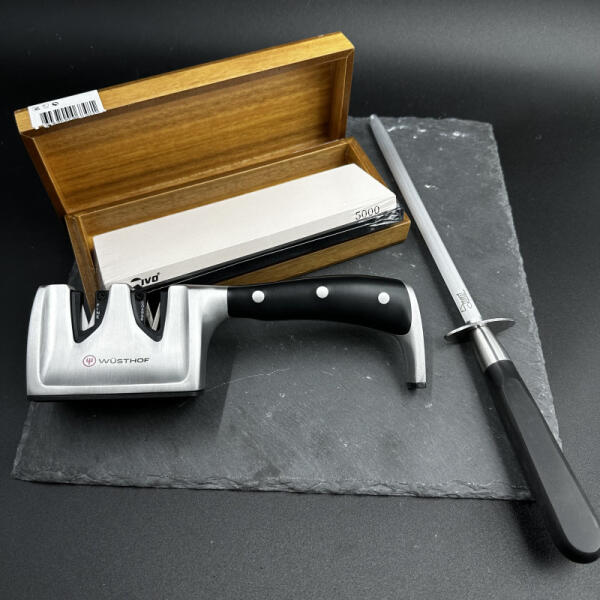 3 részes késélező készlet nagyon kedvezményes áron, mely a profi szakácsok által kedvelt válogatott eszközöket tartalmazza Ezzel a készlettel igazán éles késeket érhet el a főzés során, aminek köszönhetően kulináris különlegességei azonnal könnyebben elkészíthetők A készlet tartalma: IVO Premier fenőacél 20 cm, IVO J5000 kerámia fenőkő, Wüsthof kétfokozattú