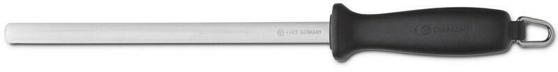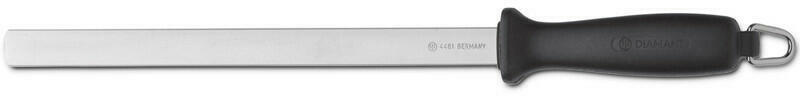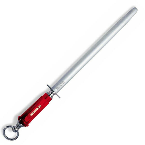 A hosszú idõ óta jól bevált F. Dick élezõ acélpenge, ergonomikus kialakítású markolattal, ujjvédelemmel, a fogantyú végén acélkarikával. Biztonságos és higiénikus, a hatályos élelmiszeripari szabályozásoknak megfelelõ. A gyémántporos bevonat csúszásmentes felületet garantál nedves, és zsíros állapotban egyaránt. (DICK)
