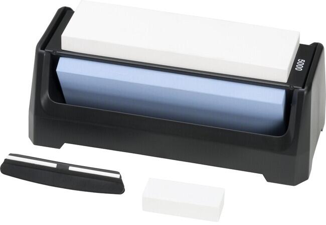 Kedvenc kései felhasználóbarát, stresszmentes élezéséhez. A 3 oldalú kialakítás lehetővé teszi a durva, közepesen finom és finom élezést, így biztosítva a nagy hatékonyságot és élezési teljesítményt. A csúszásmentes talp gyűjtőtartállyal rendelkezik a piszkos élezővíz számára. A szállítási