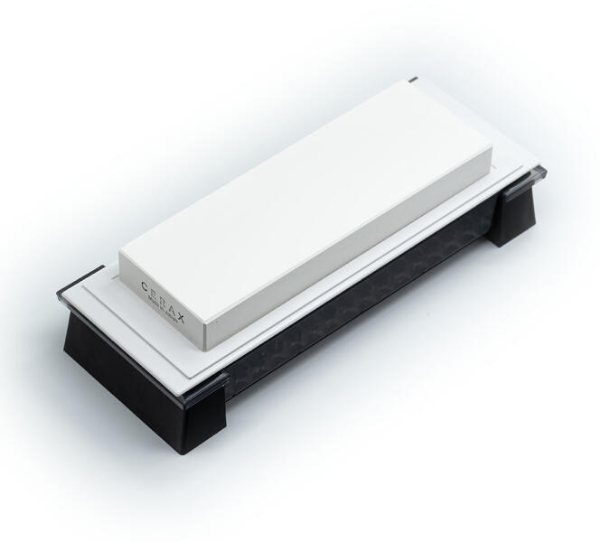 A SUEHIRO márkájú, gumiből készült két részes fenőkőtartó csúszásgátló felülettel és állítható beállításokkal szinte minden méretű fenőkőhöz használható. Nem is kell a fenőkövet faltól falig elhelyezni, mivel a tartó felülete valóban a helyén tartja a követ. Szükség esetén egy kúpos élezőt kör alakú vésők számára is be lehet szorítani a két gumit