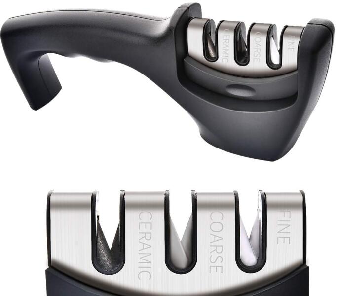 Egyedi élező acél és kerámia késekhez. A daráló 2 pengével van felszerelve. A gyémánt acél és kerámia kések előélezésére szolgál. A kerámia penge kések élezésére szolgál. A daráló teste kemény ABS műanyagból készült, és csúszásmentes alappal van ellátva, amely biztosítja a biztonságos köszörülést. Termék részletek: alkalmas: acél és kerámia késekhez
