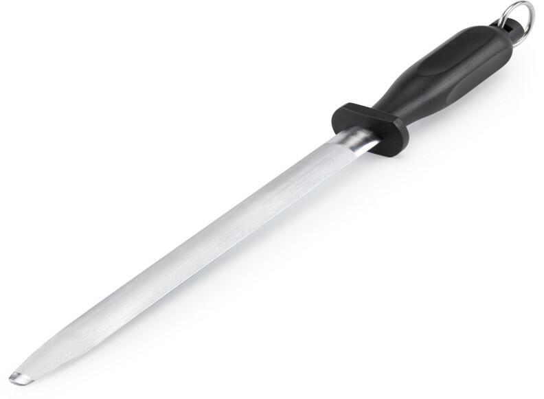 Az acél 230 mm hosszú, kényelmes csúszásgátló fogantyúval és gyűrűvel akasztható. A fogantyún egy őr van, amely biztosítja a kések karbantartásakor a biztonságot.