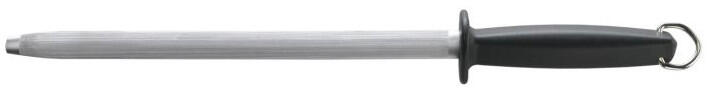 A közepes szemcséjű kerámia élezőrúd bármilyen típusú acélpengéjű kés élezésére alkalmas. Általában az ilyen típusú rudakat szakácskésekhez használják. A műszaki kerámiát tartós ovális acélcsőre hordják fel. Az effektív hasznos hosszúság 25 cm. A strapabíró formázott fogantyú fekete műanyagból készült, akasztható füllel.