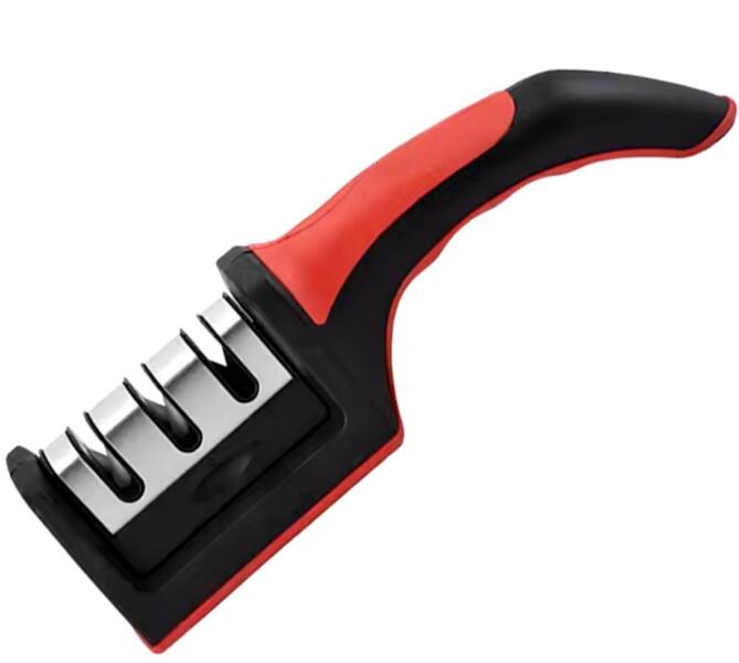Késélező Ezt a praktikus késélezőt úgy tervezték, hogy késeit mindig tökéletesen megélesítve tudhassa. A háromfázisú élező rendszer hatékony eredményt biztosít: az első lépés élesíti és helyreállítja a penge formáját, a második simítja az egyenetlenségeket, a harmadik pedig tökéletesen polírozza az élt. Az ergonomikus, csúszásmentes felületű markolat bizto