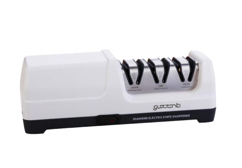 Elektromos gyémántcsiszoló acél és kerámia kések csiszolásához A Guzzanti GZ 010 lehetővé teszi a finom és durva csiszolást és polírozást. Tartalmaz egy tartályt az őrlésből származó szennyeződések számára, és könnyen tisztítható.