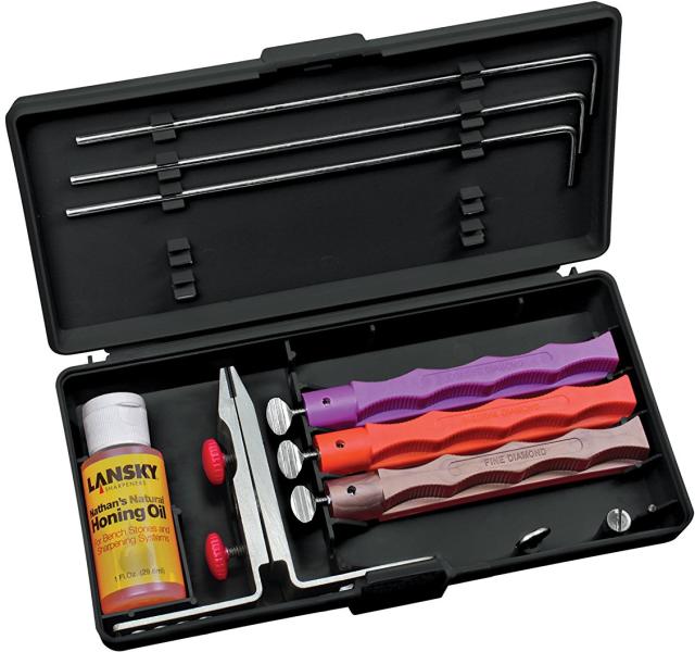 A Lansky LK3DM professzionális élezőrendszer , amely 3 különböző fokozatú gyémántkőből , bilincsből és vezetőkből áll, lehetővé téve a megfelelő szög kiválasztását és az élesítési folyamat teljes ellenőrzését. A Lansky élezőrendszereket széles körben elismerték a világ egyik legjobb és viszonylag legolcsóbb professzionális élezőgépeként. A sokéves tapa