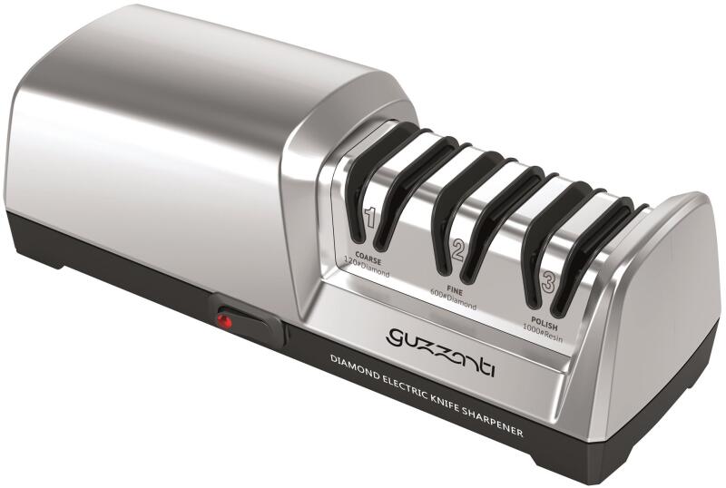 A Guzzanti GZ 011 elektromos gyémánt késélezőt acél és kerámia kések élezésére tervezték, és lehetővé teszi a durva és finom élezést és polírozást. A csiszolófej speciális anyagból készült, amely megvédi a kés oldalát a karcolásoktól a csiszolás során. Az élező egy szennyeződésgyűjtő tálcát tartalmaz, és könnyen tisztítható is.