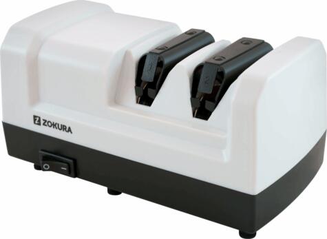 Elektromos késélező. A gyémánt élezőtárcsák tökéletes és éles élt hoznak létre. Gyors és egyszerű módja a konyhai és sportkések élezésének. Kétfokozatú élezőrendszer Vezetők a kés automatikus tökéletes szögben tartásához. Precíziós köszörülés az első szakaszban, precíziós, szögletes élt hoz létre A finomhónolás befejezi a folyamatot polírozással po
