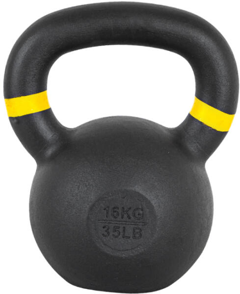 Matt fekete, elegáns külsővel rendelkező tömör vas kettlebell. Porfestett, matt fekete külső, gravírozott. Kültéri és beltéri edzéshez egyaránt alkalmas. Súlya 16 kg.