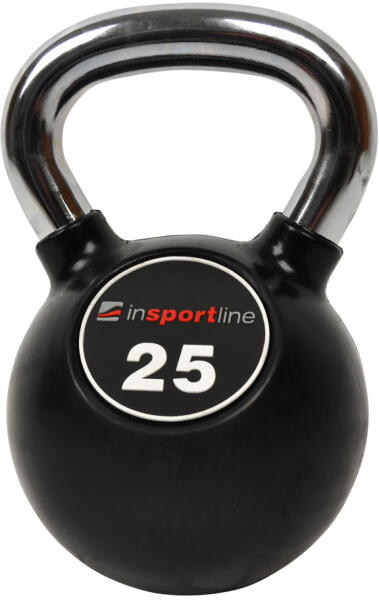 Az inSPORTline Ketlebel 25 kg gumis harangsúly egy különleges egykezes, harang alakú súlyzó, háromszög fogantyúval. A harangsúly testének felülete minőségi gumis anyagból készült, mely krómozott fogantyúval egészül ki. A harangsúly fogantyúja biztonságos és kényelmes edzést biztosít. Az inSPORTline Ketlebel harangsúly alsó része enyhén levágott a jobb stabilitás m