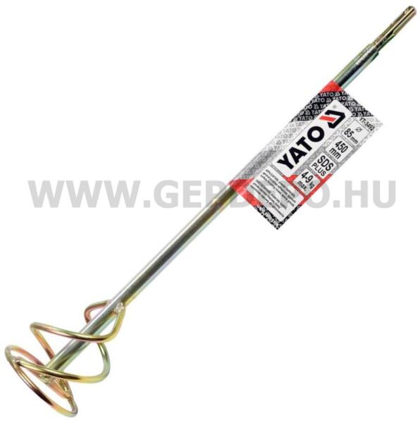 Yato keverőszár (festék) SDS-Plus befogás, spirál - 85x450 mm (4-9 kg) A spirálkeverőt ömlesztett anyagok, kész ragasztóoldatok, ragasztók, fugázóanyagok és esztrichek keverésére használják. Keverővel vagy fúróval működik. Horganyzott acélból készült. Hatszögletű szerszámbefogása van. A keverő speciális profilja biztosítja a kevert massza gyors és minőségi homo