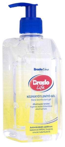 Kéz- és bőrfertőtlenítő gél pumpás 500 ml Bradolife kamillás Higiénés kézfertőtlenítésre alkalmazható gél. A készítményt töményen kell alkalmazni, 1-2 adag (kb. 5 ml) gélt jutattunk a kézre, melyet alaposan bedörzsölünk. Minimális behatási idő 30 másodperc. Antimikrobiális spektrum: baktericid (MRSA), fungicid, virucid, tuberkulocid 10 db/karton Kéz- és bőrfertő