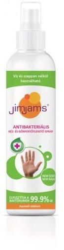 Víz és szappan nélkül használható, nem szárít, nem ragad, azonnali védelem a baktériumok ellen. 250 ml-es spray; JimJams termék fertőtlenítéshez.