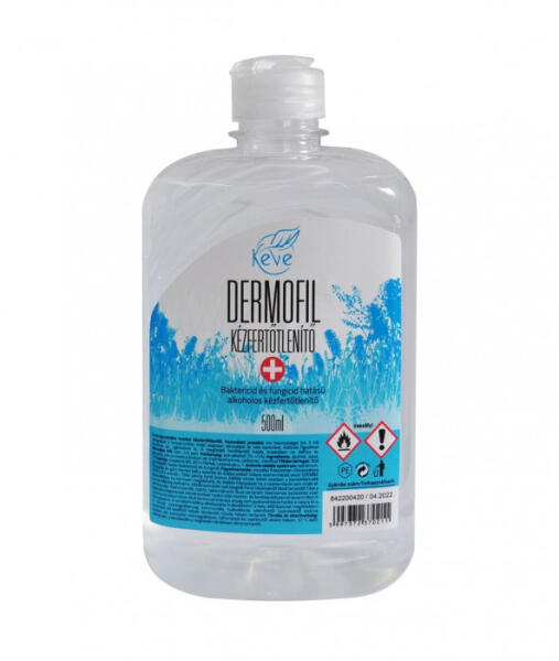 Dermofil kézfertőtlenítő, 500 ml - Baktericid és fungicid hatású alkoholos kézfertőtlenítő - Antimikrobális hatású kézfertőtlenítő - Etanol alapú kézfertőtlenítő narancs olajjal - 70% alkoholtartalmú kézfertőtlenítő - A Dermofil kézfertőtlenítő hatóanyaga: etil-alkohol 70% Használata: - Kb. 3 ml mennyiséget adagoljon a tenyerébe - Alaposan dörzsölje át vele k