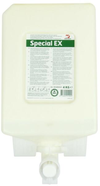 Dermatológiailag teszteltOldószermentes BőrbarátTermészetes súrolóanyagot tartalmaz Dreumex Speciál 4kg krém oldószermentes kéztisztító EX4000 adagolóhoz - Dreumex EX4000 adagolóval használható erős ipari kéztisztító - friss citrus illatú - krém állagú - szilikonmentes - 8-9 PH érték - Oldószermentes, természetes súrolószerekkel - Bőrgyógyászatilag tesztelt és j