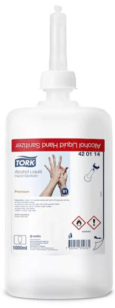 Kéz- és bőrfertőtlenítő 1 liter alkoholos S1 Tork_420114 GHS piktogram: Figyelmeztetés: Veszély Figyelmeztető mondatok: H225 Fokozottan tűzveszélyes folyadék és gőz H319 Súlyos szemirritációt okoz A Tork alkoholos folyékony kézfertőtlenítő hatékony folyékony fertőtlenítő, amely 80% (v/v) denaturált szeszt tartalmaz. Ideális megoldás, ha nem áll rendelkezésre folyó