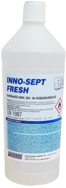 INNO-SEPT FRESH kéz- és felületfertőtlenítő szórófejes 1L - fertőtlenítő oldat - antimikrobiális spektrum: baktericid (MRSA), yeasticid, tuberkulocid, szelektív virucid (burkos vírusokra) - alkalmazási feltételek: töményen kell alkalmazni Felhasználható a közegészségügy, az élelmiszeripar, a vendéglátás valamint a szolgáltató ipar különböző területein foglalkozá
