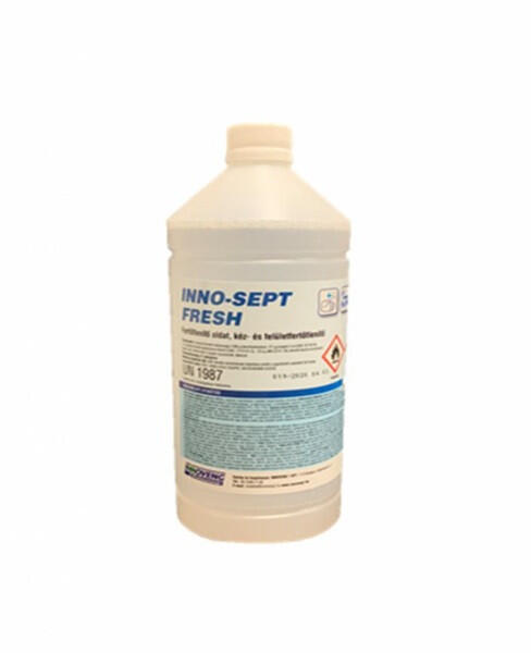 KÉZ- ÉS FELÜLETFERTŐTLENÍTŐ OLDAT KUPAKKAL 500 ML INNO-SEPT FRESH Kéz- és felületfertőtlenítő GHS piktogram: Figyelmeztetés: Veszély Figyelmeztető mondatok: H225 Fokozottan tűzveszélyes folyadék és gőz. H315 Bőrirritáló hatású. H319 Súlyos szemirritációt okoz. H336 Álmosságot vagy szédülést okozhat. H412 Ártalmas a vízi élővilágra, hosszan tartó károsodást