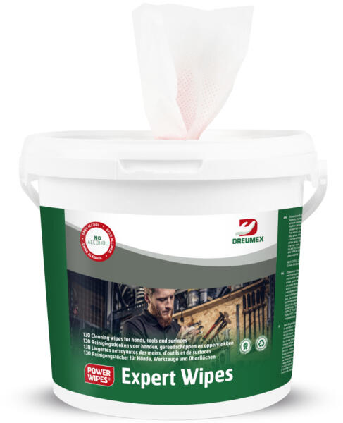 A Dreumex Expert Wipes törlőkendővel gyorsan és egyszerűen tisztíthatja meg kezét, szerszámait és munkafelületeit olyan helyeken, ahol nem áll rendelkezésre víz. Ez a nagyon hatékony tisztítókendő kiválóan alkalmazható kenőanyagok, olajok, zsírok, valamint a legerősebb szennyeződések, például ragasztók, lakkok és tömítőanyagok gyors eltávolítására. Dreumex Exper
