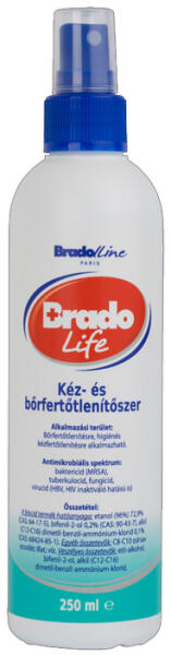 KÉZ- ÉS BŐRFERTŐTLENÍTŐ PUMPÁS 250 ML BRADOLIFE Kéz- és bőrfertőtlenítő pumpás 250 ml BradoLife A BradoLife kéz- és bőrfertőtlenítő kiválóan alkalmas a kezeid és a bőröd higiéniás fertőtlenítésére, akár otthoni körülmények között is. Nem csak a jól ismert baktériumokkal, de a gombákkal és vírusokkal szemben is védelmet nyújt. Gyorsan szárad. Nem ragad.