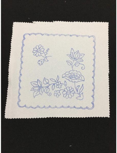 20*20 centiméteres (szegés, cakkozás után 16x16 centiméteres) előrajzolt, hímezhető kis terítő. Az előrajzolt kézimunka a legrégebbi múltra visszatekintő, hagyományos magyar hímzésfajta.
