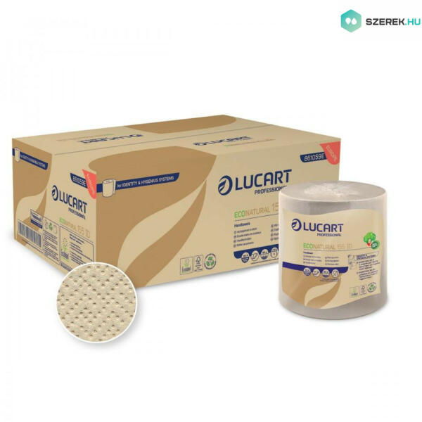Lucart ECO Natural tekercses törlő 2 rétegű 155m - tekercses kéztörlő papír - Lucart Hygenius és Identity kéztörlő adagolóban használható - Ecolabel címkével ellátott környezetbarát termék - 2 rétegű - havanna barna színű - ragasztott - 155 méter/tekercs (620 kéztörlésre) - 6 tekercs/karton