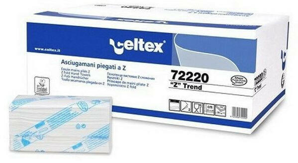 - Celtex Z Trend hajtogatott kéztörlő - Z hajtogatott kéztörlő papír - 2 rétegű - 20,5x24 cm/lap - 100% cellulóz - fehér - 150 lap/csomag - 25 csomag/karton (3750 lap) - 44 karton/raklap