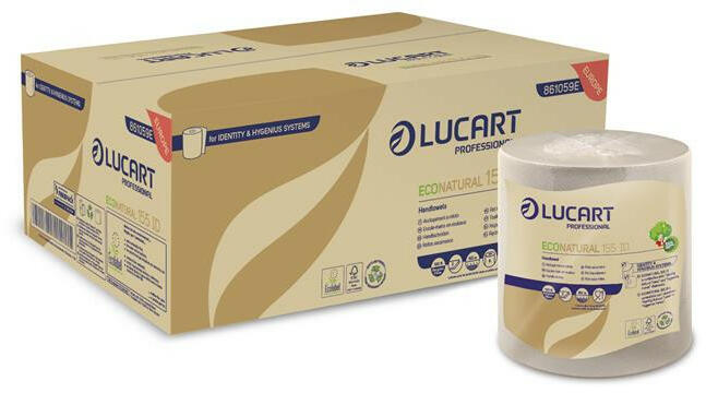 Kéztörlő, tekercses, 2 rétegű, Identity Autocut adagolóhoz, LUCART "EcoNatural 155 ID", havanna barna prémium minőségű öko kéztörlő, puha és kellemes érzettel tekercs hossza: 155 m tekercs mérete: 20,8x19 cm lapszám: 554 belső mag átmérője 3,8 cm 2 rétegű természetes szín, a papír anyagára jellemző világos, havanna barna szín az üdítős dobozokban található fehé