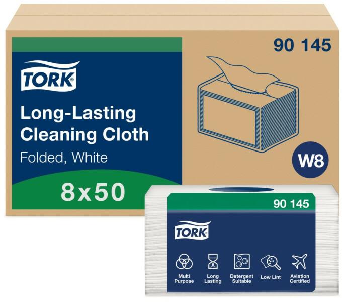 A Tork többször használható tisztítókendő rendkívül nagy nedvszívó képességű és ellenálló, így többször is felhasználható, mivel nem szakad el. A kendő a Tork hajtogatott törlőpapír/tisztítókendő adagolóval együtt használható, amely védi a lapokat a szennyeződésektől, a laponkénti adagolás pedig csökkenti a felhasznált mennyiséget és a keletkezett hullad