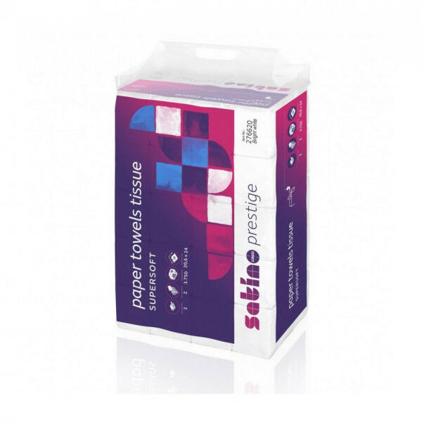 - Satino wepa Prestige Z hajtogatott kéztörlő 2 rétegű, fehér, 20,6x24cm, 25x150 lap/zsák - Z hajtogatott kéztörlő papír - supersoft - 100% cellulóz - fehér - 2 rétegű - 20,6 x 24 cm/lap - ragasztott - 25 x 150 lap/zsák (3750 lap) - 40 zsák/raklap