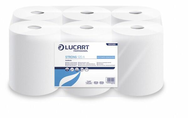 Törlőkendő, tekercses, belső adagolású, 2 rétegű, LUCART "Strong 14 CF", hófehér Nagyon puha, kellemes tapintású minőségi papír kéztörlő. Kiváló választás közepes-és nagy forgalmú helyekre. A PEFC erdőgazdálkodási szabvány fenntarthatósági előírásainak megfelelően előállított 100% ban színtiszta szűz cellulóz rostokból készül. tekercs átmérő: 14 cm te
