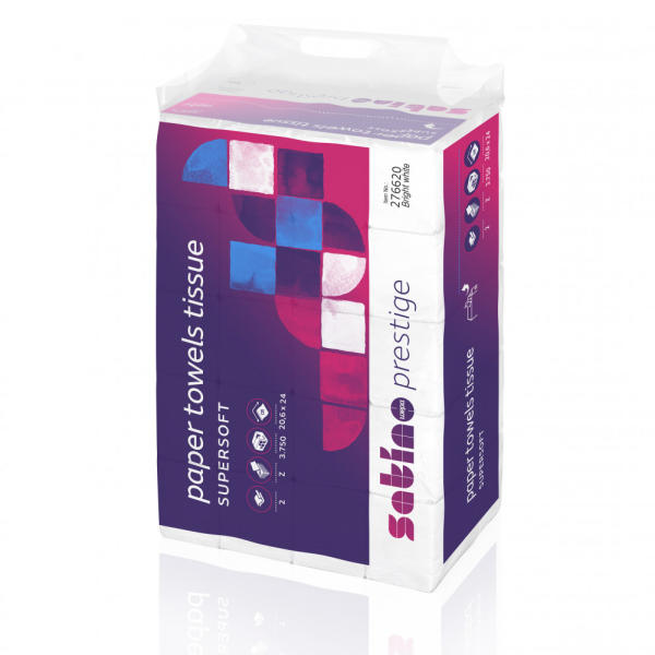 - Satino wepa Prestige Z hajtogatott kéztörlő 2 rétegű, fehér, 20,6x24cm, 25x150 lap/zsák - Z hajtogatott kéztörlő papír - supersoft - 100% cellulóz - fehér - 2 rétegű - 20,6 x 24 cm/lap - ragasztott - 25 x 150 lap/zsák (3750 lap) - 40 zsák/raklap
