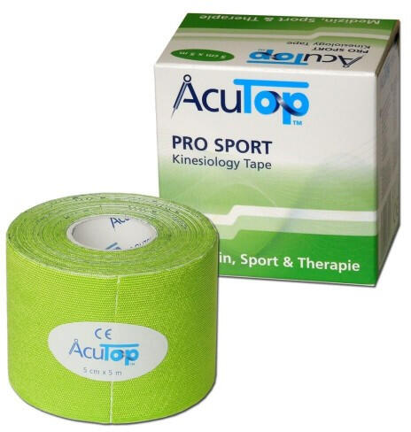 ACUTOP Pro Sport kineziológiai szalag sport és terápiás célokra. Sportolók számára fejlesztett, a hagyományos kineziológiai tapasznál kb 20%-kal rugalmasabb és jobban nyújtható, erősen ragadó, műselyem hordozószövetű tapasz (bőrre is, egymásra is jól tapadó). A nedves párás környezetet jobban bírja a hagyományos kineziológiai tapaszoknál, víztaszító viszkóz anyag