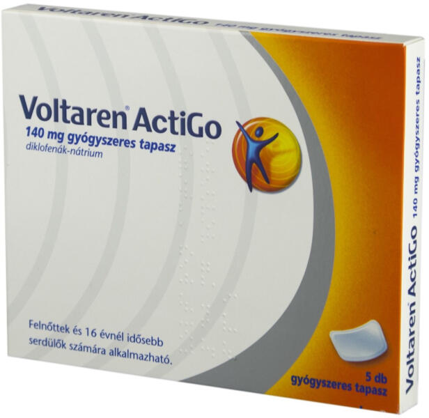 Betegtájékoztató: Információk a felhasználó számáraVoltaren ActiGo 140 mg gyógyszeres tapaszdiklofenák-nátrium Mielőtt elkezdi alkalmazni ezt a gyógyszert, olvassa el figyelmesen az alábbi betegtájékoztatót, mert az Ön számára fontos információkat tartalmaz. Ezt a gyógyszert mindig pontosan a betegtájékoztatóban leírtaknak, vagy az Ön kezelőorvosa, gyógyszerésze ál