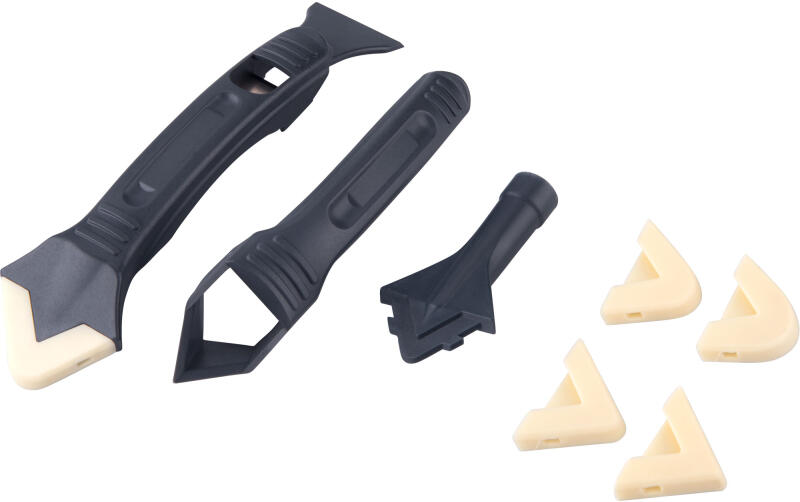 3 db ABS műanyag szerszám: fugalehúzó- és kaparó, fuga eltávolító, kenőfej+ 5 db szilikon lehúzóprofil R=3-6-10-13-17 mm