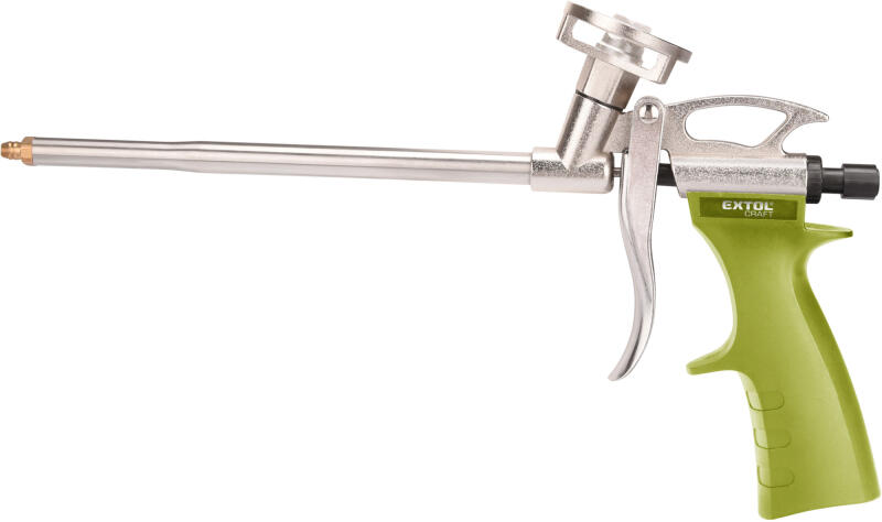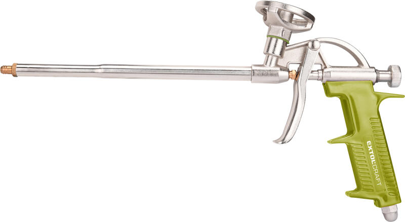 A purhab pisztoly cserélhető műanyag adagolócsövének segítségével a hab pontosan a kívánt helyre jut ki. A krómozással történő felületkezelés növeli a korrózióval szembeni ellenálló képességet. Az anyaggal való maximális takarékoskodás érdekében a kinyomó pisztoly szabályozócsavarja a habáramot a szükséges szélességűre állítja.