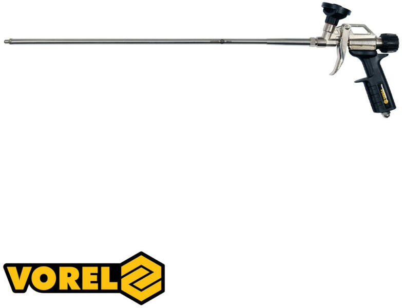 purhab pisztoly hosszú szárral 500 mm Pu habpisztoly 500 mm-es lándzsával. Öntött alumínium test. Nagy, kényelmesen használható gombbal rendelkezik a hab áramlásának szabályozására. A főszelep rozsdamentes acél golyóval, a pisztoly szerelőkosara ptfe réteggel bevonva (csökkenti a hab tapadását, csökkenti a pisztoly tisztításához szükséges időt). Az 500 mm hosszú lá