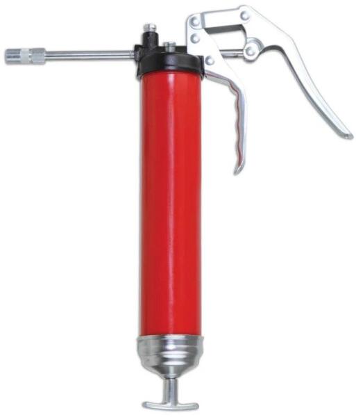 Laser Tools - UK Supa-Lite elnevezésű alumínium pisztoly formájú fogantyúval ellátott zsírzó pisztoly változó löket tartományban a szűk területekhez. Extra erős 5000 PSI (345 Bar) nyomás tartományban dolgozik. Dupla kimeneti ponttal ellátott (felső és oldalsó). Tulajdonságok: - Alumínium kivitele miatt 25% -al könnyebb súlyú, mint a standard acél zsírpisztolyok. - A ki