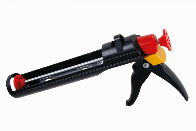 Félig zárt, elfordítható fémszerkezettel rendelkezik a kinyomó pisztoly, tubus: 310 ml. ELŐNYÖK: -Fém tüske a megszáradt ragasztóanyag eltávolításához -Állítható lökethossz -túlfolyás gátló -megerősített mozgató szerkezetű a kinyomó pisztoly -Max. kinyomóerő: 4000N, max. -360°-ban körbeforgatható acél bölcső