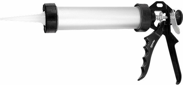 Kinyomópisztoly standard, maximum 320 ml-es kartusokhoz. Nyitott kivitelű, lakkozott acélból.