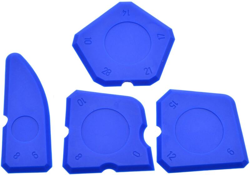 Szilikonsimítók 4db4részes simítókészlet termoplasztikus gumiból (TPR) friss szilikon- és akrilréteg felviteléhez és kisimításához. A simítók különféle alakúak, így különböző szélességű és szögű csatlakozásokhoz használathatóak.