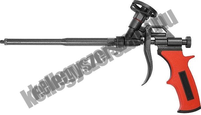 Tubusos poliuretán hab adagolására szolgáló pisztoly. Előnye a pontos adagolás, a tartalom jó felhasználhatósága és csökkentett beszáradás, ha a patronban lévő hab nem fogy el. A pisztoly szétcsavarozásához M10, M14 és M19 villáskulcs szükséges.